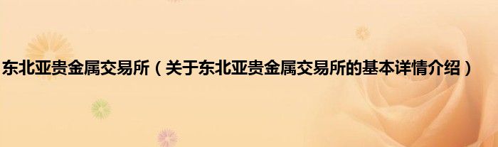 本文关于东北亚贵金属交易所的基本详情介绍就讲解完毕,希望对大家有所帮助。