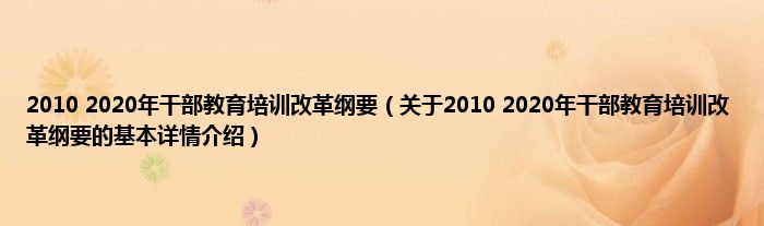 本文关于2010 2020年干部教育培训改革纲要的基本详情介绍就讲解完毕,希望对大家有所帮助。