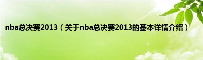 本文关于nba总决赛2013的基本详情介绍就讲解完毕,希望对大家有所帮助。