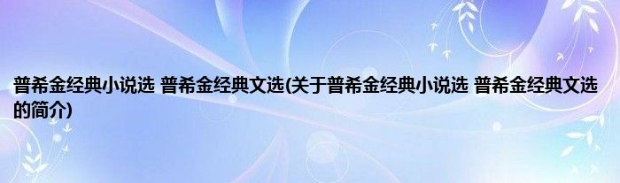 本文关于普希金经典小说选 普希金经典文选的简介就讲解完毕,希望对大家有所帮助。