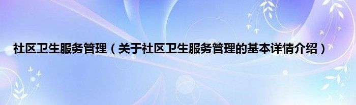 本文关于社区卫生服务管理的基本详情介绍就讲解完毕,希望对大家有所帮助。