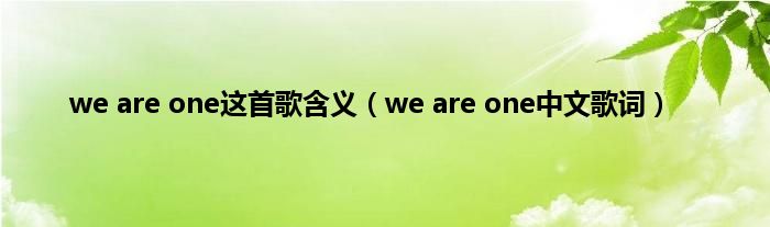 以上就是【we are one这首歌含义,we are one中文歌词】相关内容。