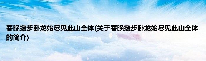 大家好,春晚缓步卧龙始尽见此山全体,关于春晚缓步卧龙始尽见此山全体的简介很多人还不知道,现在让我们一起来看看吧!