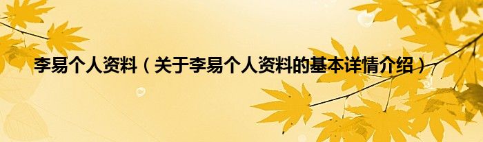 本文关于李易个人资料的基本详情介绍就讲解完毕,希望对大家有所帮助。