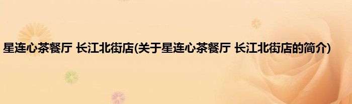 本文关于星连心茶餐厅 长江北街店的简介就讲解完毕,希望对大家有所帮助。