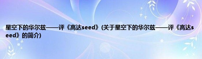 本文关于星空下的华尔兹——评《高达seed》的简介就讲解完毕,希望对大家有所帮助。