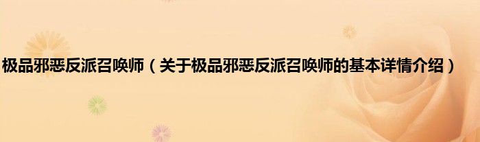 本文关于极品邪恶反派召唤师的基本详情介绍就讲解完毕,希望对大家有所帮助。