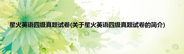 本文关于星火英语四级真题试卷的简介就讲解完毕,希望对大家有所帮助。