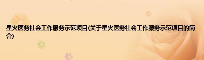 大家好,星火医务社会工作服务示范项目,关于星火医务社会工作服务示范项目的简介很多人还不知道,现在让我们一起来看看吧!