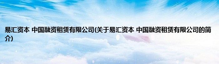 大家好,易汇资本 中国融资租赁有限公司,关于易汇资本 中国融资租赁有限公司的简介很多人还不知道,现在让我们一起来看看吧!