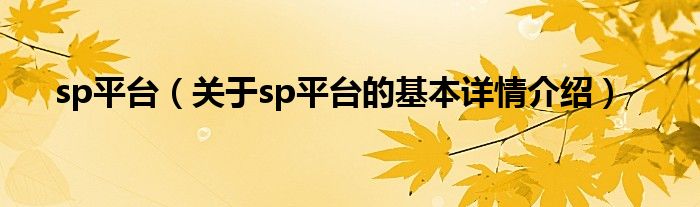 本文关于sp平台的基本详情介绍就讲解完毕,希望对大家有所帮助。