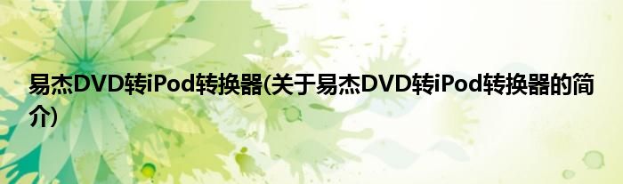 本文关于易杰DVD转iPod转换器的简介就讲解完毕,希望对大家有所帮助。