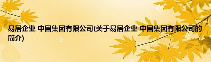 本文关于易居企业 中国集团有限公司的简介就讲解完毕,希望对大家有所帮助。