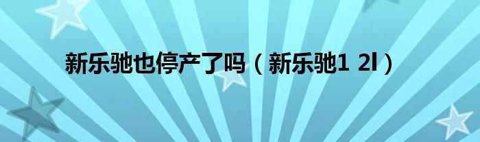 以上就是【新乐驰也停产了吗,新乐驰1 2l】相关内容。