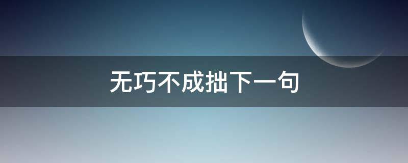 无巧不成拙没有下一句,无巧不成拙,谚语。指巧拙是相对而言可以相互转化的,巧生于拙,拙生于巧。谚语是一个汉语词语,谚语是汉语的重要组成部分,是指广泛流传于民间的言简意赅的短语。多数谚语反映了劳动人民的生活实践经验,而且一般是经过口头传下来的。它多是口语形式的通俗易懂的短句或韵语。人们生活中常用的现成的话。