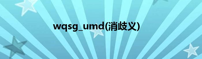 以上就是【wqsg_umd(消歧义)】相关内容。