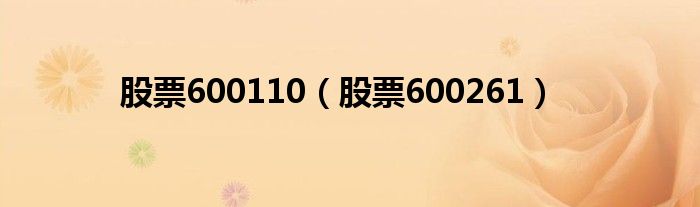 大家好,小问来为大家解答以上问题。股票600110,股票600261这个很多人还不知道,现在让我们一起来看看吧!