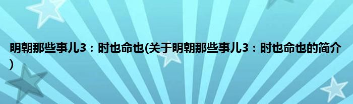 本文关于明朝那些事儿3:时也命也的简介就讲解完毕,希望对大家有所帮助。