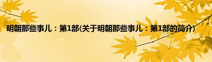 大家好,明朝那些事儿:第1部,关于明朝那些事儿:第1部的简介很多人还不知道,现在让我们一起来看看吧!