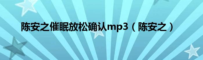 大家好,小问来为大家解答以上问题。陈安之催眠放松确认mp3,陈安之这个很多人还不知道,现在让我们一起来看看吧!