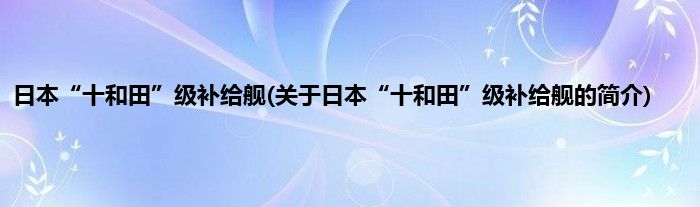 本文关于日本“十和田”级补给舰的简介就讲解完毕,希望对大家有所帮助。