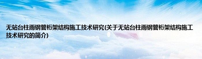 大家好,无站台柱雨钢管桁架结构施工技术研究,关于无站台柱雨钢管桁架结构施工技术研究的简介很多人还不知道,现在让我们一起来看看吧!