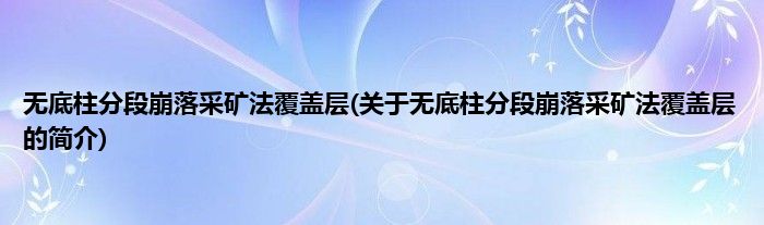 大家好,无底柱分段崩落采矿法覆盖层,关于无底柱分段崩落采矿法覆盖层的简介很多人还不知道,现在让我们一起来看看吧!