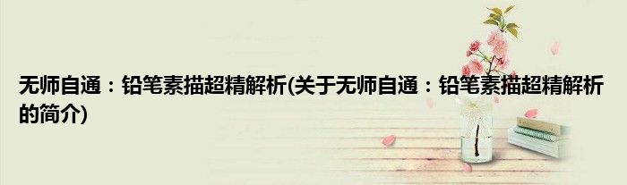 本文关于无师自通:铅笔素描超精解析的简介就讲解完毕,希望对大家有所帮助。