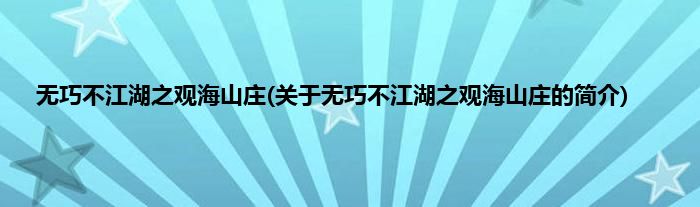 大家好,无巧不江湖之观海山庄,关于无巧不江湖之观海山庄的简介很多人还不知道,现在让我们一起来看看吧!