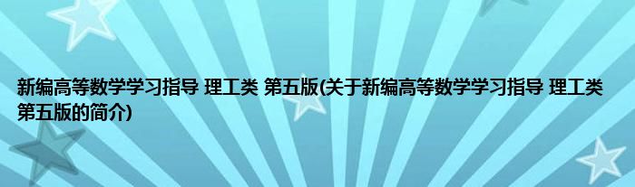 本文关于新编高等数学学习指导 理工类 第五版的简介就讲解完毕,希望对大家有所帮助。