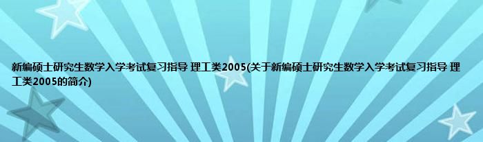 1、 《新编硕士研究生数学入学考试复习指导(理工类2005)》是2004年出版的图书。