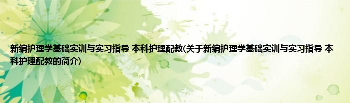 1、 《新编护理学基础实训与实习指导(本科护理配教)》是人民卫生出版社出版的图书。