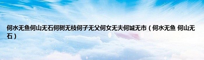 大家好,小问来为大家解答以上问题。何水无鱼何山无石何树无枝何子无父何女无夫何城无市,何水无鱼 何山无石这个很多人还不知道,现在让我们一起来看看吧!