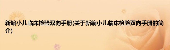 本文关于新编小儿临床检验双向手册的简介就讲解完毕,希望对大家有所帮助。
