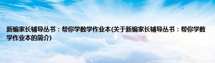 大家好,新编家长辅导丛书:帮你学数学作业本,关于新编家长辅导丛书:帮你学数学作业本的简介很多人还不知道,现在让我们一起来看看吧!