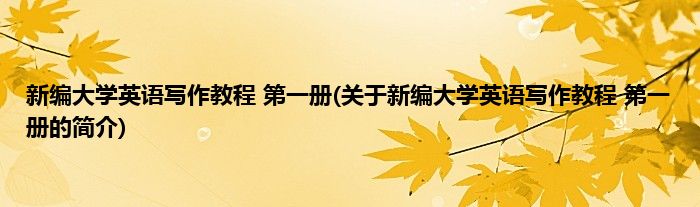 大家好,新编大学英语写作教程 第一册,关于新编大学英语写作教程 第一册的简介很多人还不知道,现在让我们一起来看看吧!