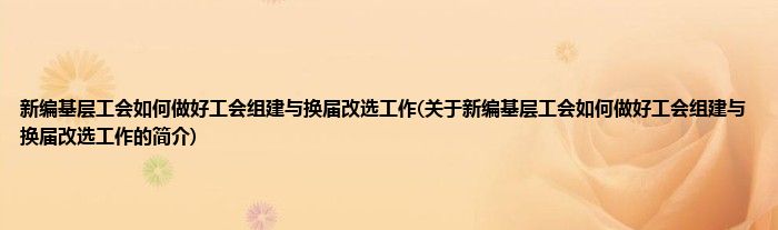 本文关于新编基层工会如何做好工会组建与换届改选工作的简介就讲解完毕,希望对大家有所帮助。