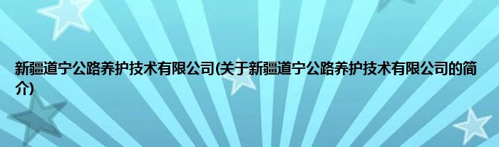 大家好,新疆道宁公路养护技术有限公司,关于新疆道宁公路养护技术有限公司的简介很多人还不知道,现在让我们一起来看看吧!