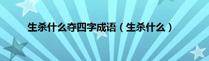 大家好,小问来为大家解答以上问题。生杀什么夺四字成语,生杀什么这个很多人还不知道,现在让我们一起来看看吧!