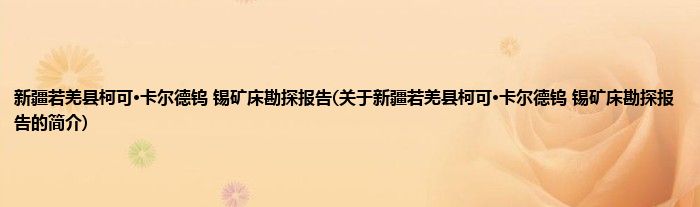 本文关于新疆若羌县柯可·卡尔德钨 锡矿床勘探报告的简介就讲解完毕,希望对大家有所帮助。