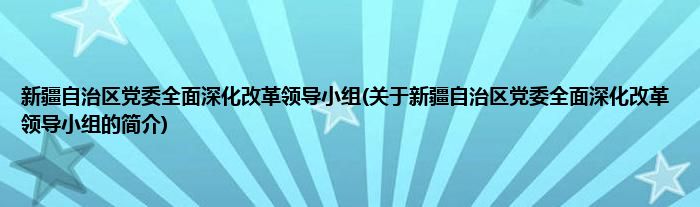 大家好,新疆自治区党委全面深化改革领导小组,关于新疆自治区党委全面深化改革领导小组的简介很多人还不知道,现在让我们一起来看看吧!