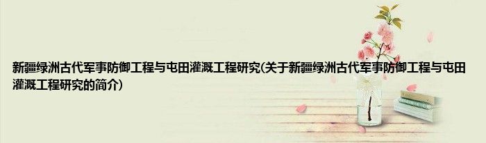本文关于新疆绿洲古代军事防御工程与屯田灌溉工程研究的简介就讲解完毕,希望对大家有所帮助。