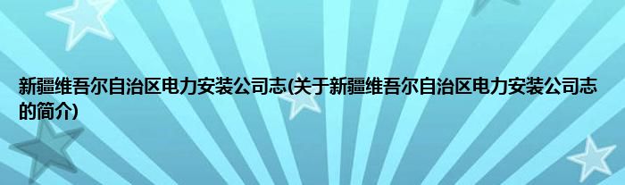 本文关于新疆维吾尔自治区电力安装公司志的简介就讲解完毕,希望对大家有所帮助。