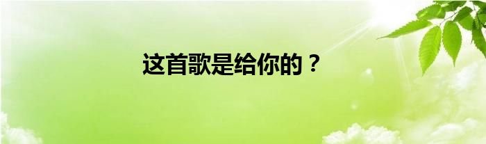 这首歌是给你的?