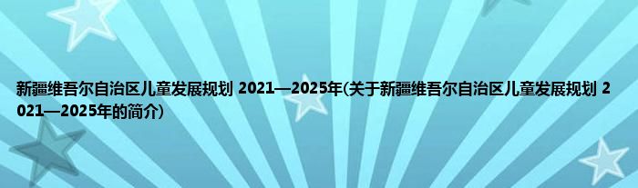 本文关于新疆维吾尔自治区儿童发展规划 2021—2025年的简介就讲解完毕,希望对大家有所帮助。