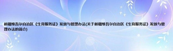 大家好,新疆维吾尔自治区《生育服务证》发放与管理办法,关于新疆维吾尔自治区《生育服务证》发放与管理办法的简介很多人还不知道,现在让我们一起来看看吧!