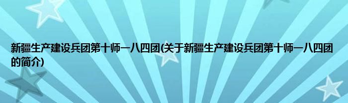 大家好,新疆生产建设兵团第十师一八四团,关于新疆生产建设兵团第十师一八四团的简介很多人还不知道,现在让我们一起来看看吧!