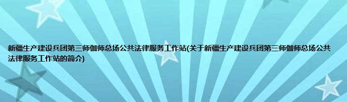大家好,新疆生产建设兵团第三师伽师总场公共法律服务工作站,关于新疆生产建设兵团第三师伽师总场公共法律服务工作站的简介很多人还不知道,现在让我们一起来看看吧!