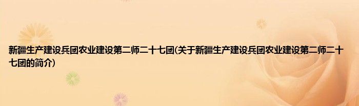 本文关于新疆生产建设兵团农业建设第二师二十七团的简介就讲解完毕,希望对大家有所帮助。