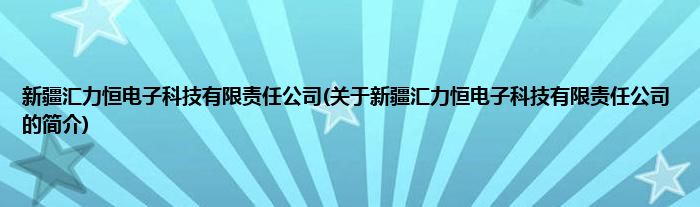 本文关于新疆汇力恒电子科技有限责任公司的简介就讲解完毕,希望对大家有所帮助。